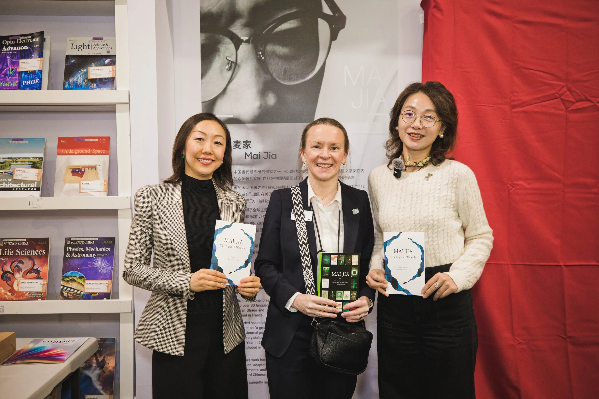 Alicia Liu, CEO of Singing Grass, Emma Lowe, Director of The London Book Fair, and Felicity Yan, Literary Agent for Author Mai Jia